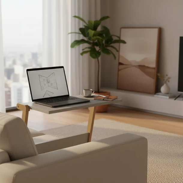 Mesa de Arrime para sillon/cama. Estilo nórdico elegante y funcional. Fabricada con materiales de alta calidad, mesa auxiliar resistente y duradera. Su tamaño compacto la hace ideal para espacios reducidos como salas de estar, dormitorios o incluso como mesa de noche.